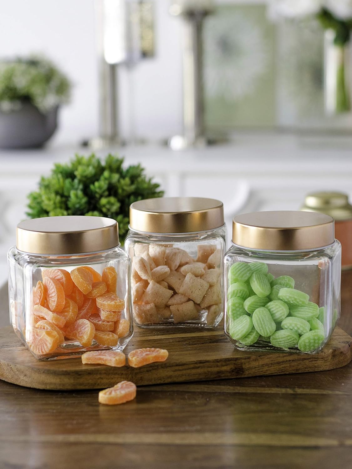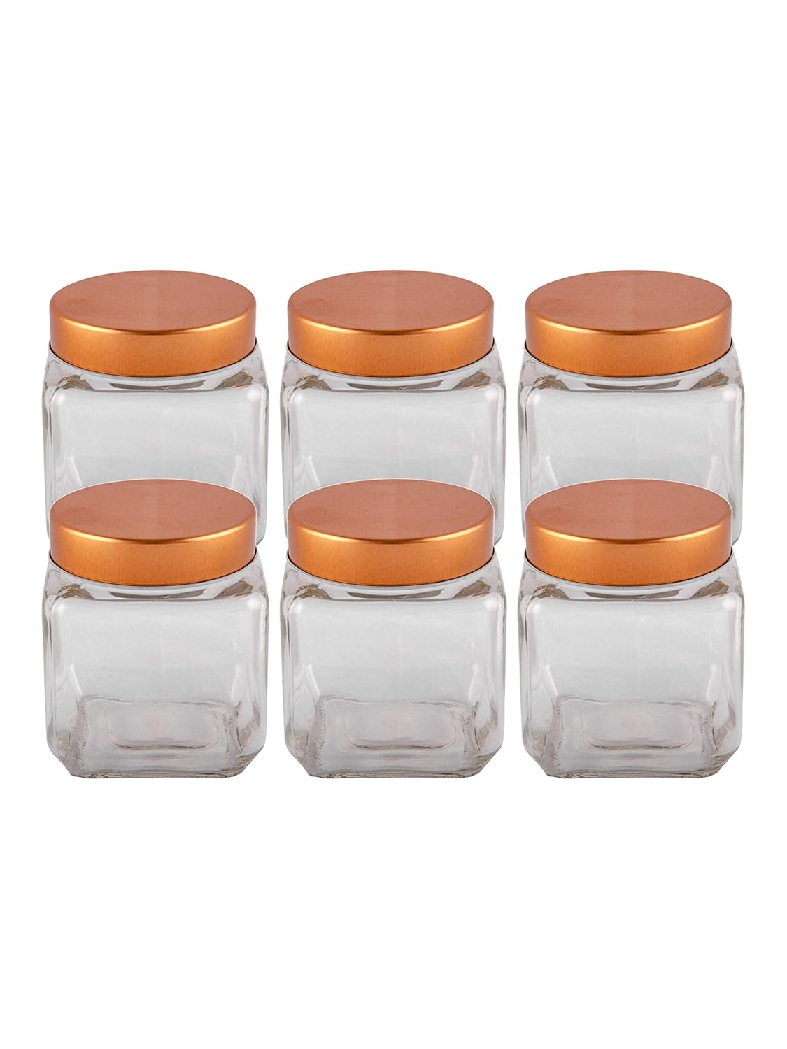 ოთხკუთხედი მინის ქილა 500 მლ ხრახნიანი მაღალი თავსახურით